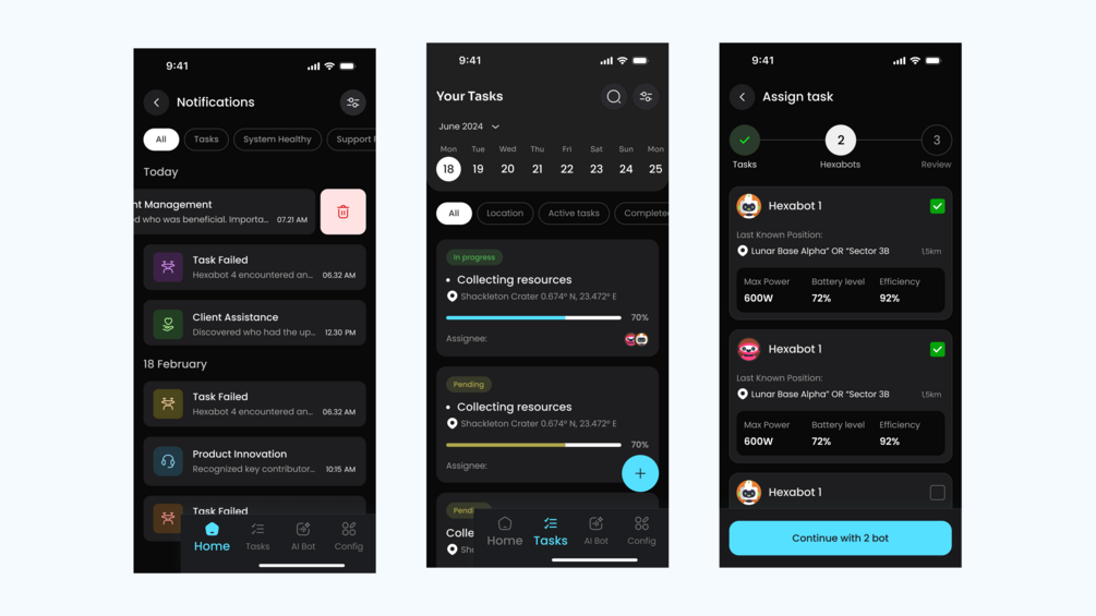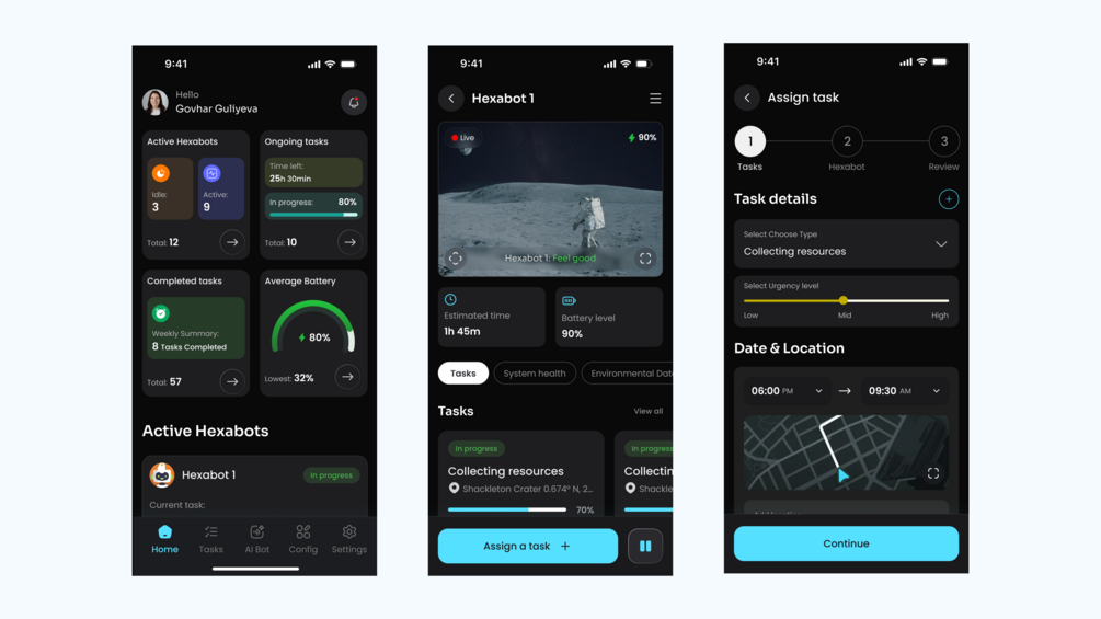 LUNIX is a smart interface designed to manage autonomous robots in lunar missions. It supports real-time task planning and coordination, enabling smooth collaboration between humans and Hexabots in extreme space conditions.